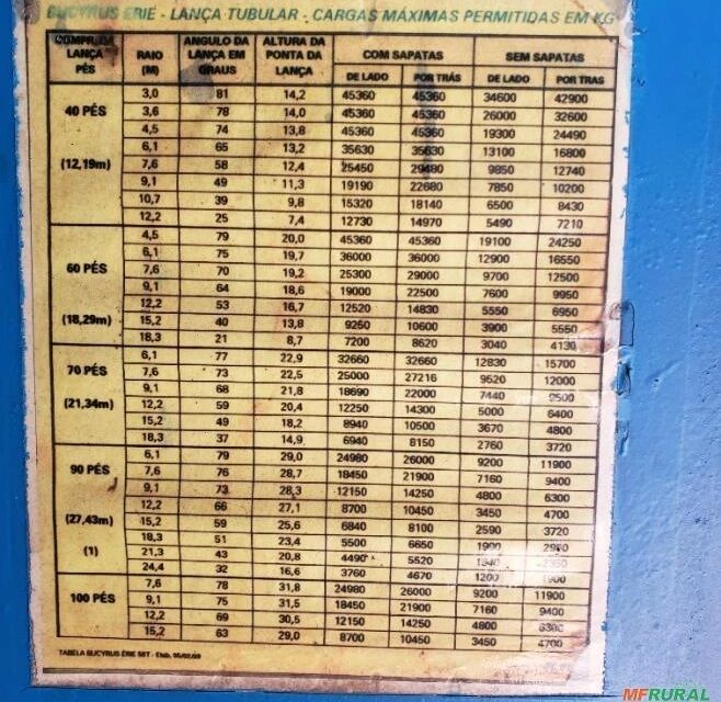 A venda Guindaste Bucyrus Erie – 50 Ton com lanças treliçadas de 50 m de comprimento. Valor R$ 130.000,00